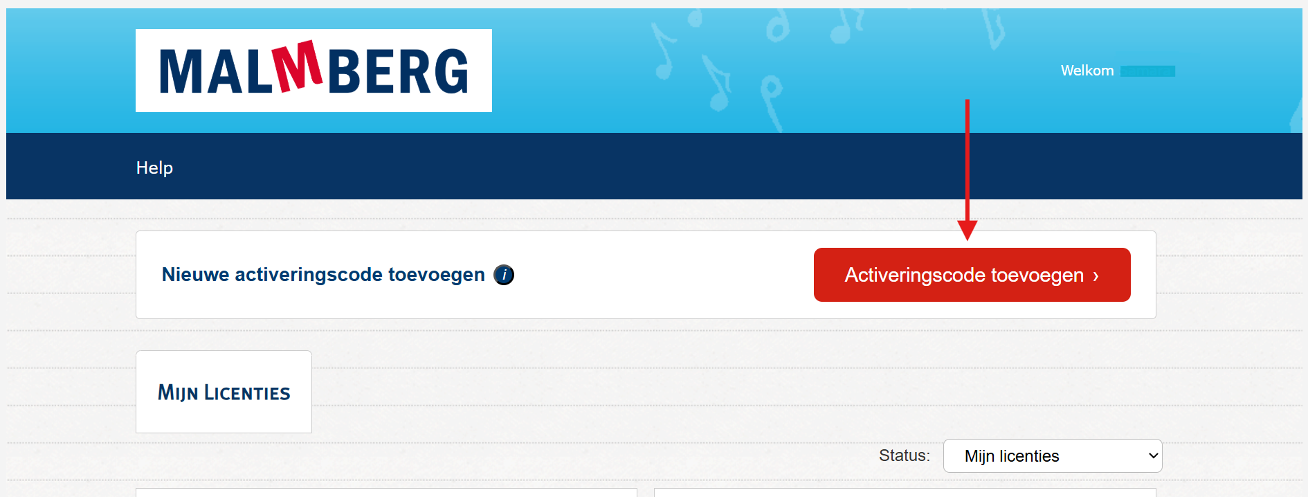 2. Klik op de rode knop Activeringscode toevoegen (rechts bovenin).